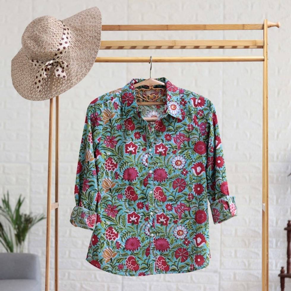Printed Button-Up Cotton Shirt 'Spring Awakening' Item ID: 2669943960