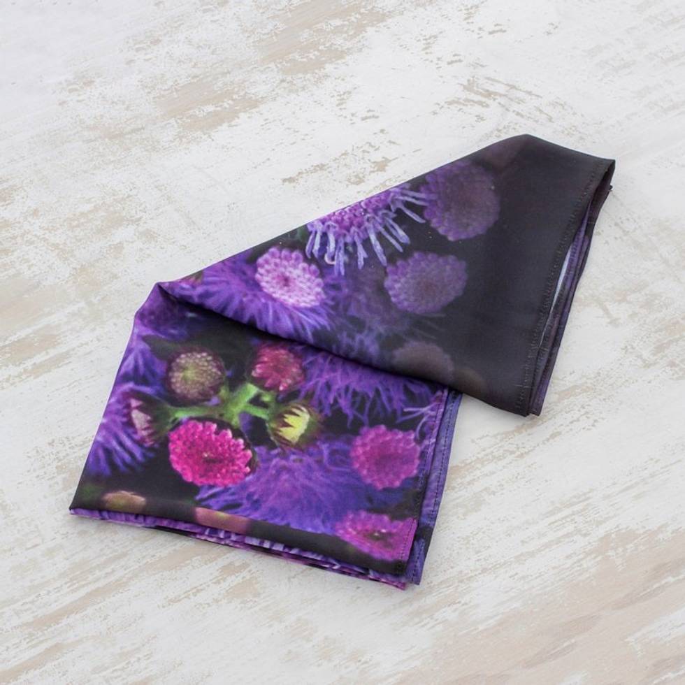 Printed Handkerchief with Purple Floral Print 'Beauty and Bliss' Item ID: 2671780349