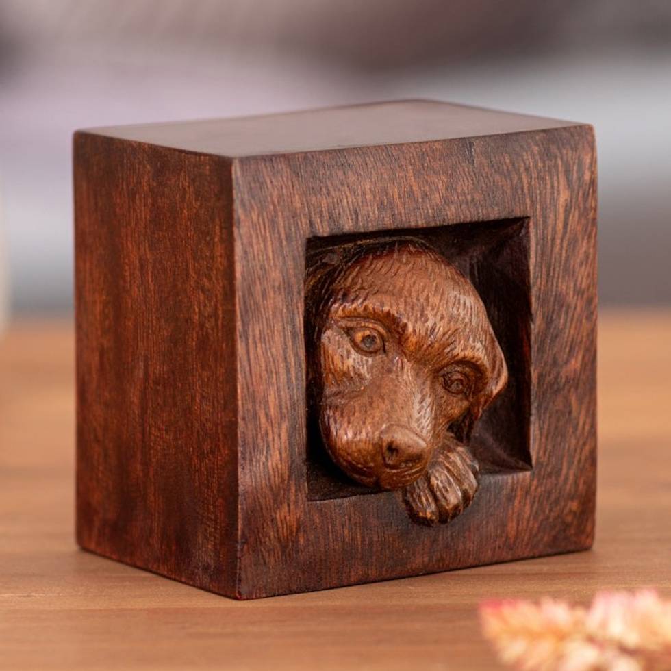 Puppy Dog-Themed Whimsical Hand-Carved Cedarwood Sculpture 'Playful Puppy' Item ID: 2671697935