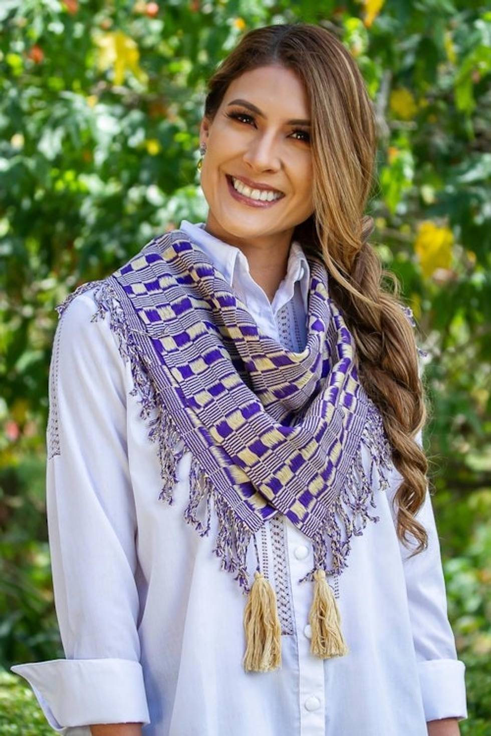 "I love my work and I love to combine different colors. Each time I create a new design, I find inspiration in my community, in our fidelity to this precious work that transmits the teachings of generation after generation. I remember the warmth each weaving generates in every member of my family. This gives me a beautiful sensation of security that I try to express in each of my designs.