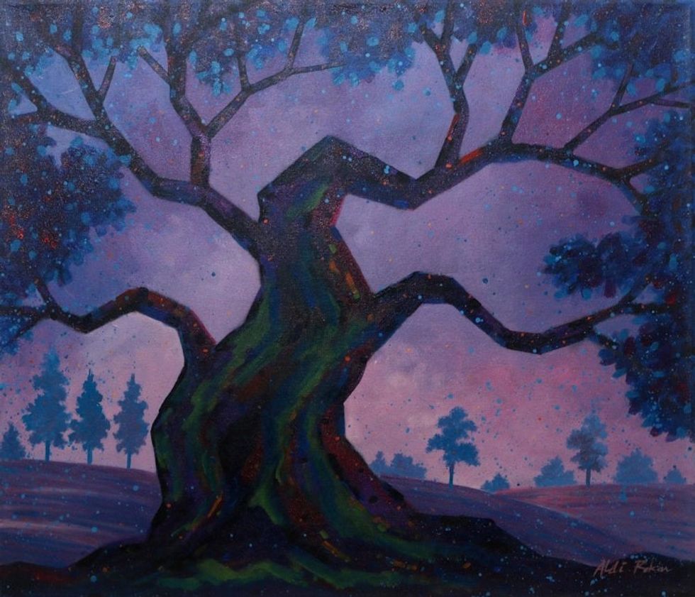 Purple and Blue Acrylic Tree Painting 'Valor Old Tree' Item ID: 2669889421