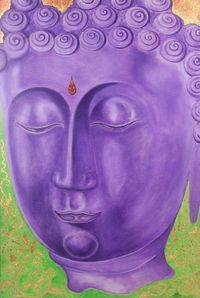 Purple Buddha Painting Signed Thai Fine Arts 'Buddhist Faith II' Item ID: 2669889152