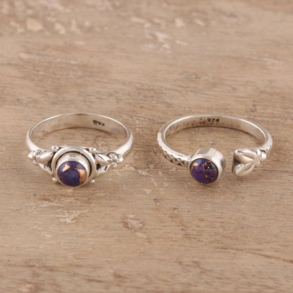 Purple Composite Turquoise and Sterling Silver Rings Pair 'Turquoise Beauty in Purple' Item ID: 2669924276