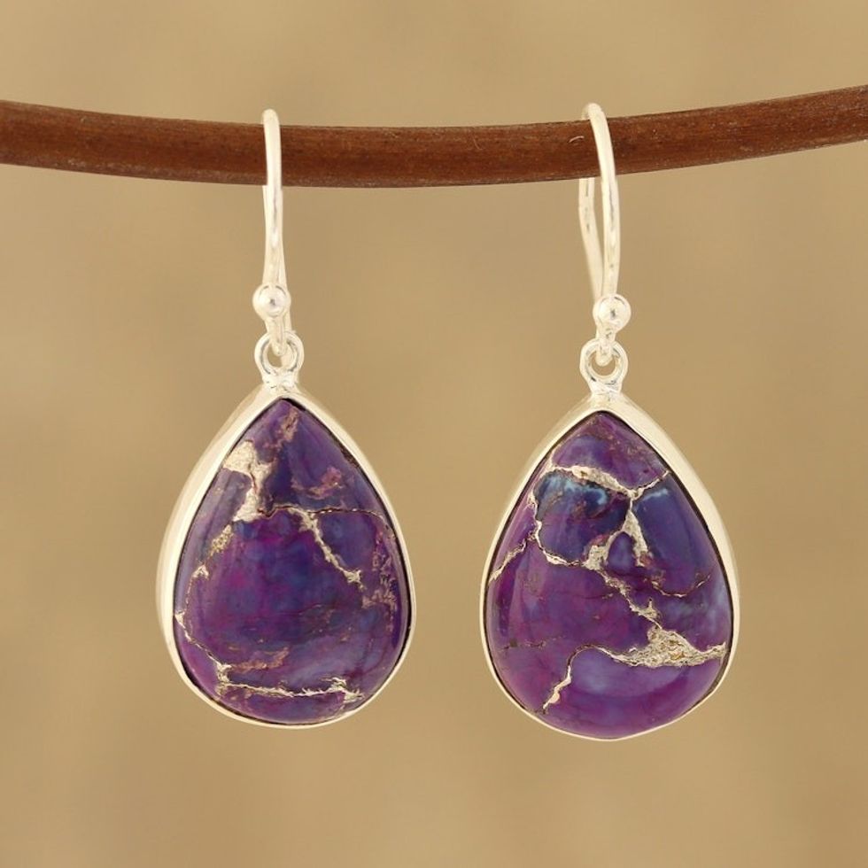 Purple Composite Turquoise Dangle Earrings from India 'Regal Veins' Item ID: 2671618671
