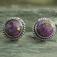 Purple Composite Turquoise Stud Earrings with Silver 925 'Purple Radiance' Item ID: 2669924970