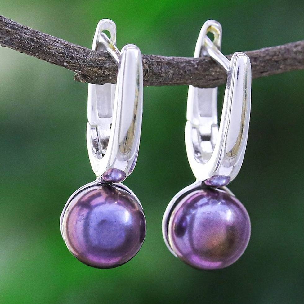 Purple Cultured Pearl Drop Earrings 'Mood Lift in Purple' Item ID: 2669928464
