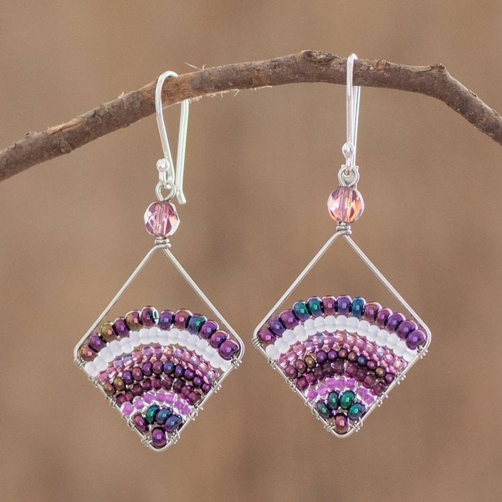 Purple Dangle Earrings With Glass Beads and Silver Hooks 'Purple Bead Rainbow' Item ID: 2671772134