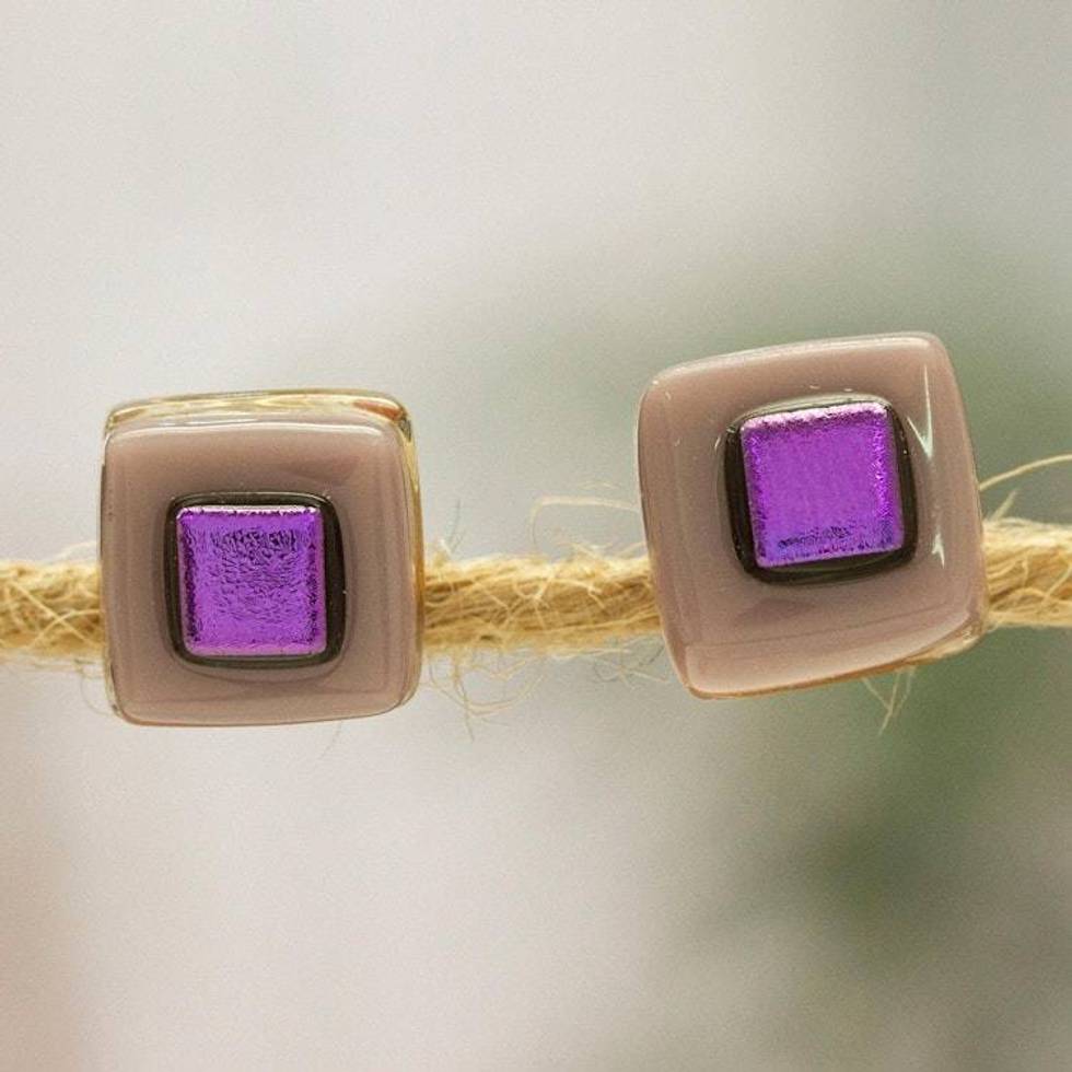Purple Fused Glass Mosaic Stud Earrings Handmade in Mexico 'Lilac Dichroic' Item ID: 2676647088