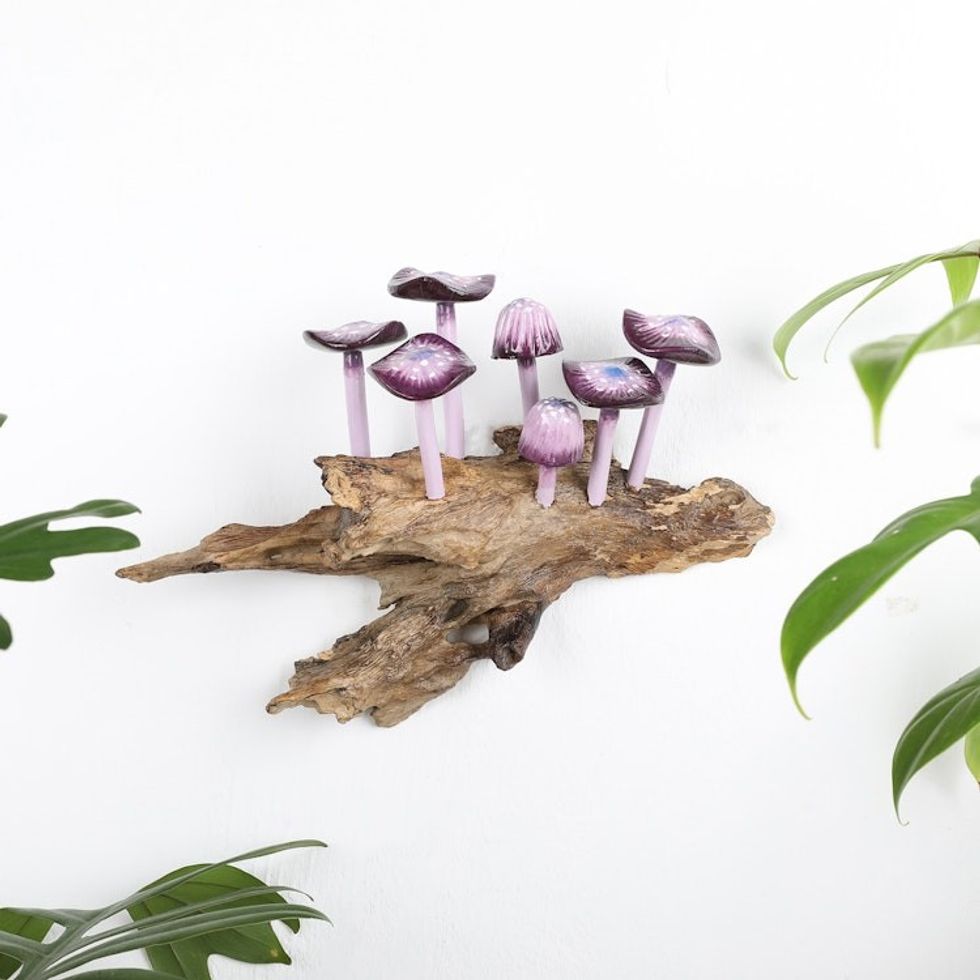 Purple Gamal and Jempinis Wood Mushroom Wall Sculpture 'Little Purple Nature' Item ID: 2671763305