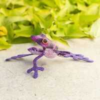 Purple Hand Crafted Alebrije Style Frog Figurine Sculpture 'Purple Dancing Frog' Item ID: 2671639285