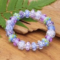 Purple-Hued Blown Glass and Crystal Beaded Stretch Bracelet 'Tender Spell' Item ID: 2671796762