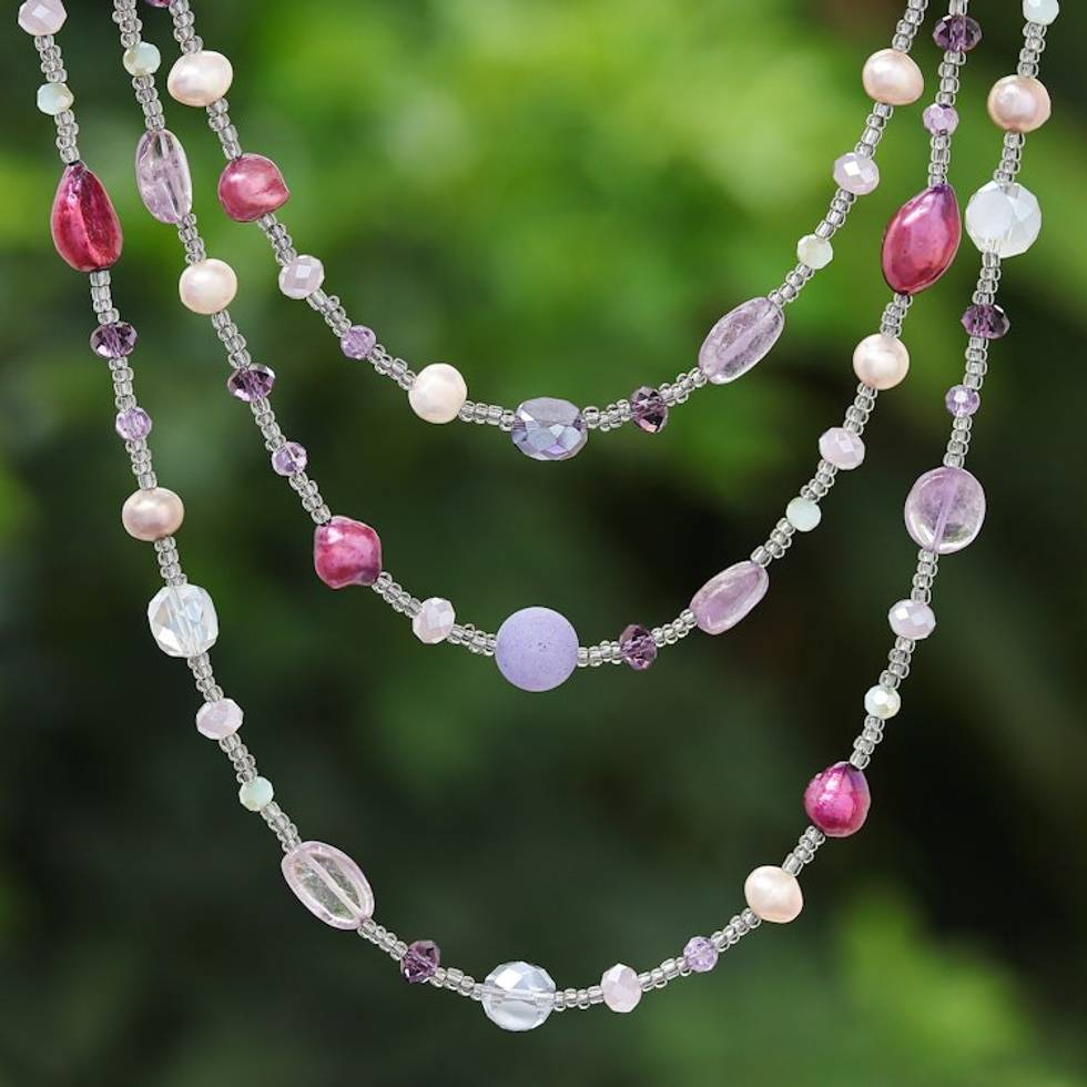 Purple Multi-Gemstone Beaded Strand Necklace from Thailand 'Fancy Purple' Item ID: 2669930714