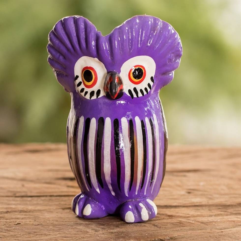 Purple Owl-shaped Ceramic Figurine Handcrafted in Guatemala 'Adventurous Tecolote' Item ID: 2669933859
