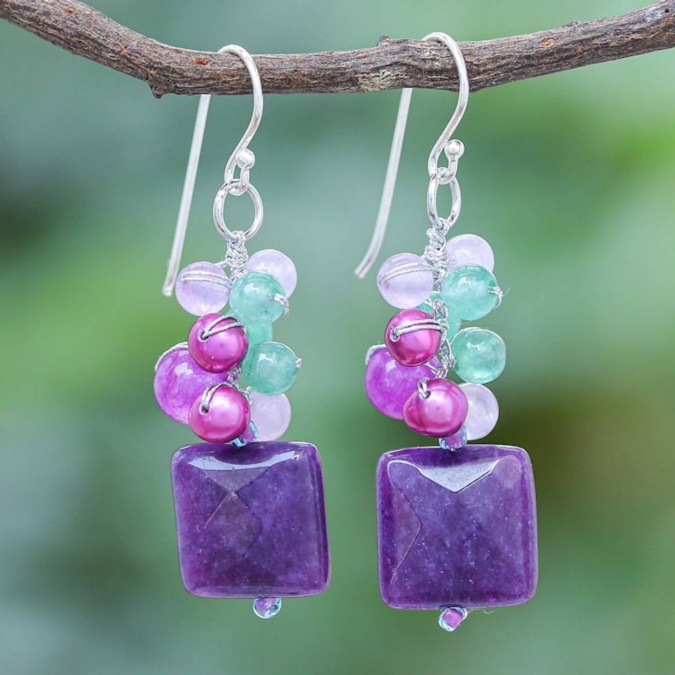 Purple Quartz and Cultured Pearl Dangle Earrings 'Full of Dreams' Item ID: 2671797482