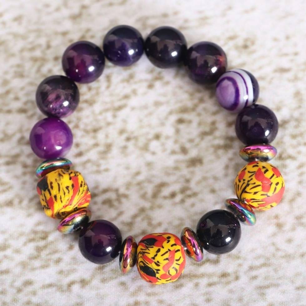 Purple Recycled Glass Beaded Stretch Bracelet from Ghana 'Party at Twilight' Item ID: 2671805355