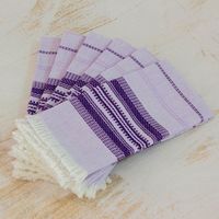 Purple Striped 100 Cotton Napkins Set of 6 'Cheerful Kitchen in Purple' Item ID: 2671627057