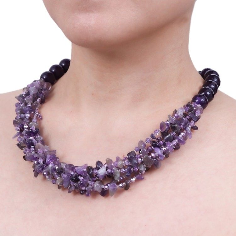 Purple-Toned Amethyst and Chalcedony Beaded Strand Necklace 'Wise Jewels' Item ID: 2671797869
