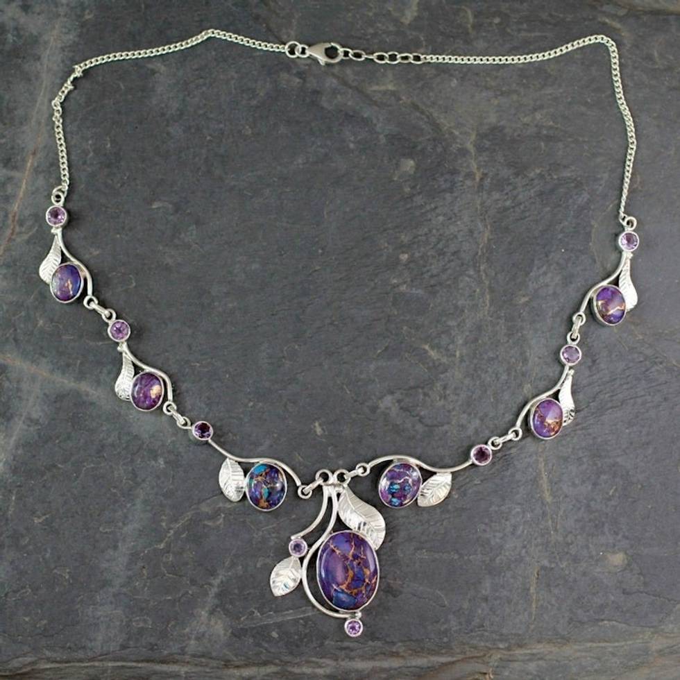 Purple Turquoise and Amethyst Handmade Necklace from India 'Dew Blossom' Item ID: 2671618810
