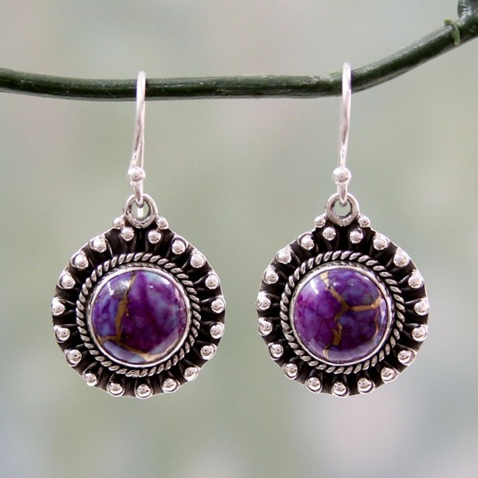 Purple Turquoise and Sterling Silver Earrings from India 'Purple Fire' Item ID: 2671793845