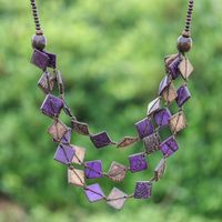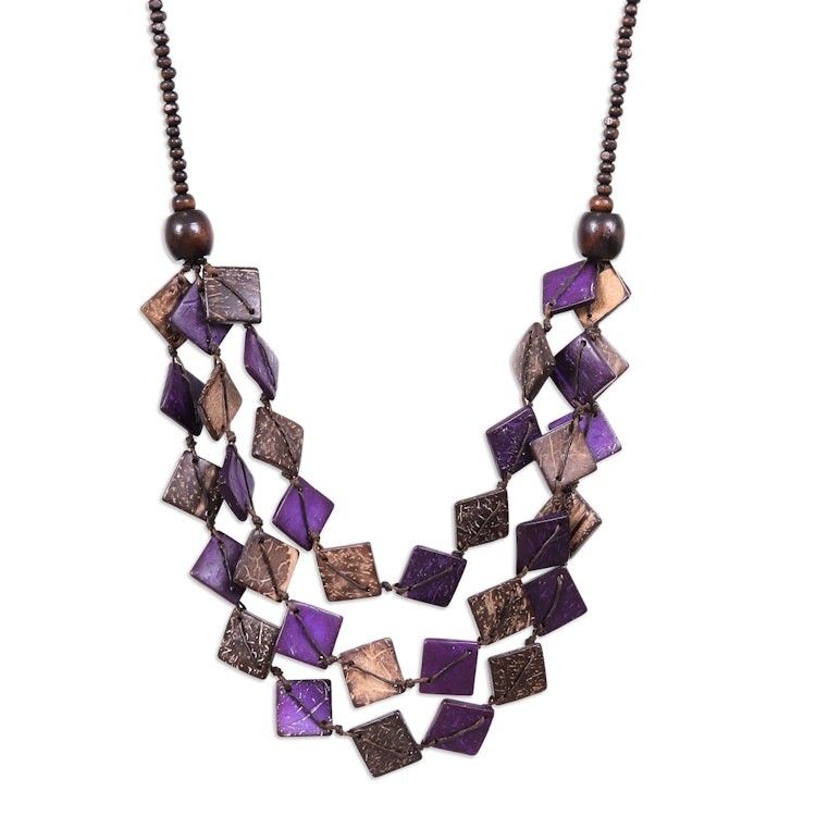 Purple Wood and Coconut Shell Beaded Strand Necklace 'Enchanted Diamonds' Item ID: 2671796609