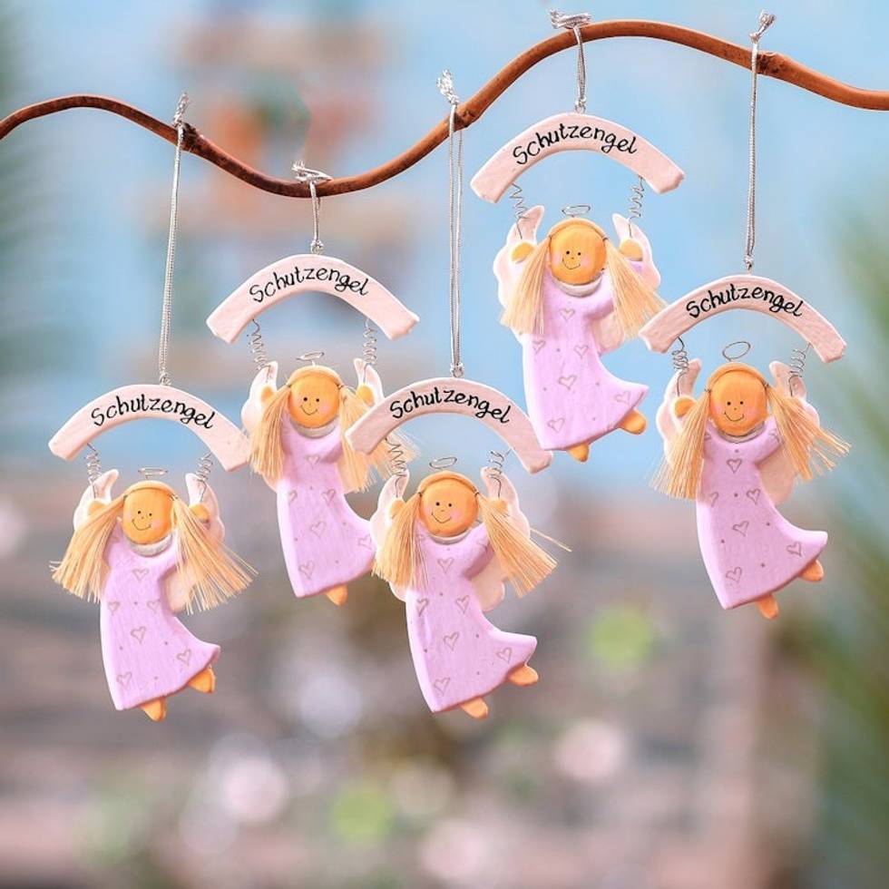 Purple Wood Guardian Angel Ornaments from Bali Set of 5 'Schutzengel in Purple' Item ID: 2671736444