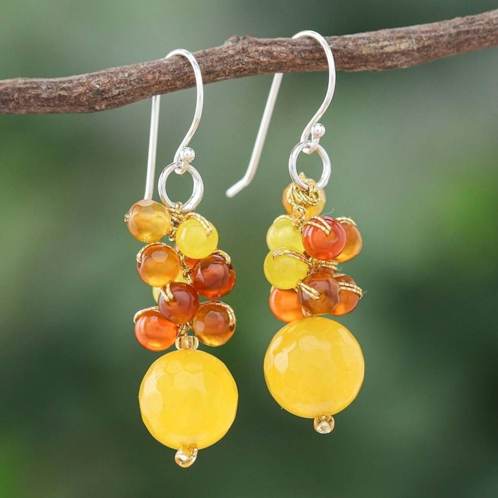 Quartz and Carnelian Dangle Earrings 'Apricot Candy' Item ID: 2671800103