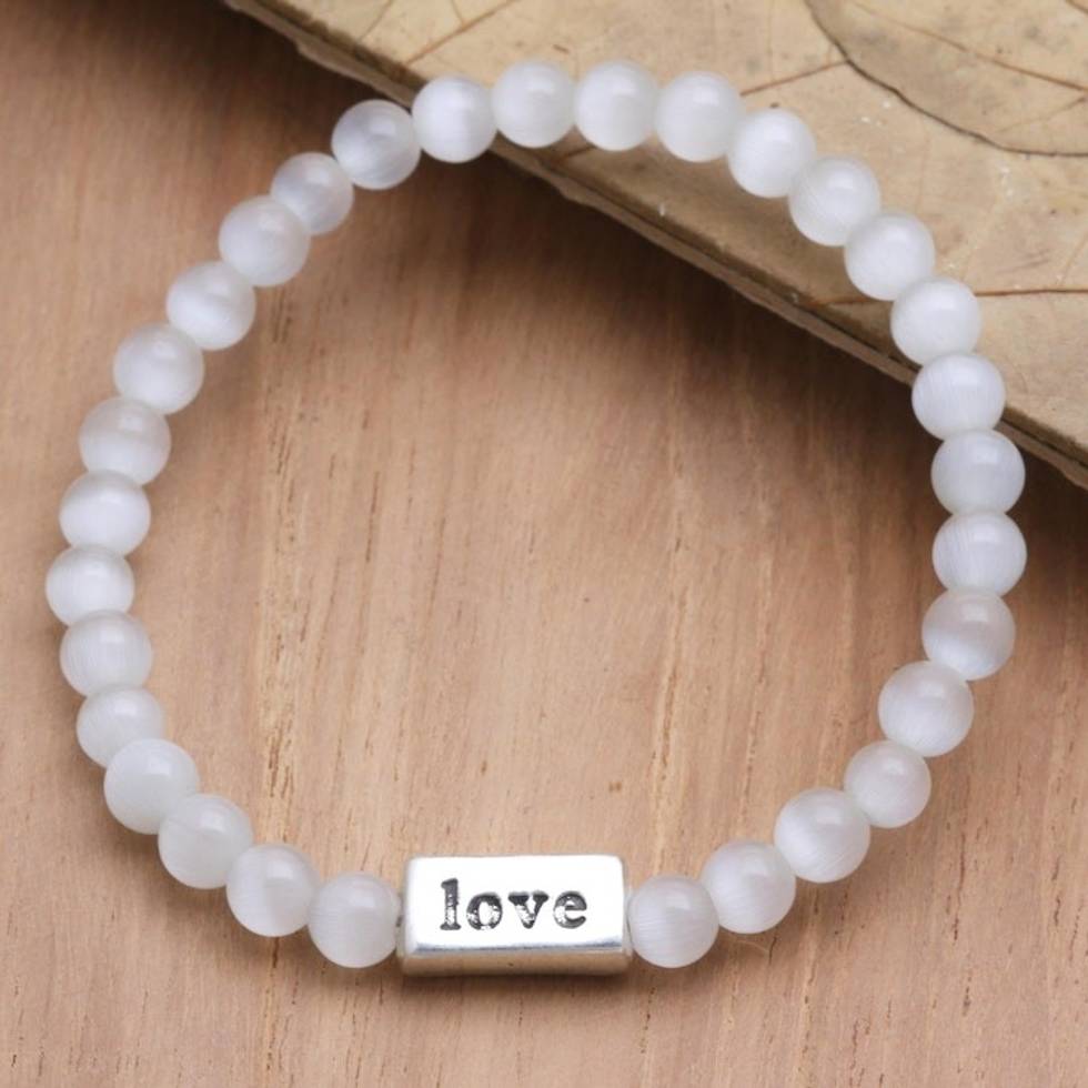 Quartz and Sterling Silver Stretch Bracelet 'Cherished One in White' Item ID: 2671745034