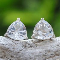 "Chatchanop Naratcharuj from Thailand uses translucent quartz and sterling silver to hand-craft these sophisticated stud earrings. The artisan places clear faceted quartz stones in decorative prongs to create these fashion earrings that are very versatile and perfect for any occasion."