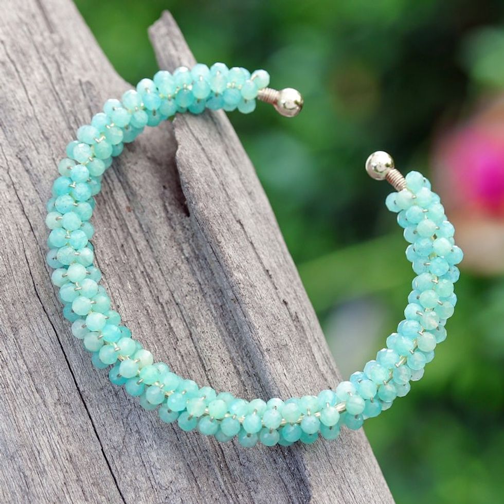 Quartz Copper Wire Beaded Cuff Bracelet with Brass Fixtures 'Breathtaking Beauty' Item ID: 2671796662