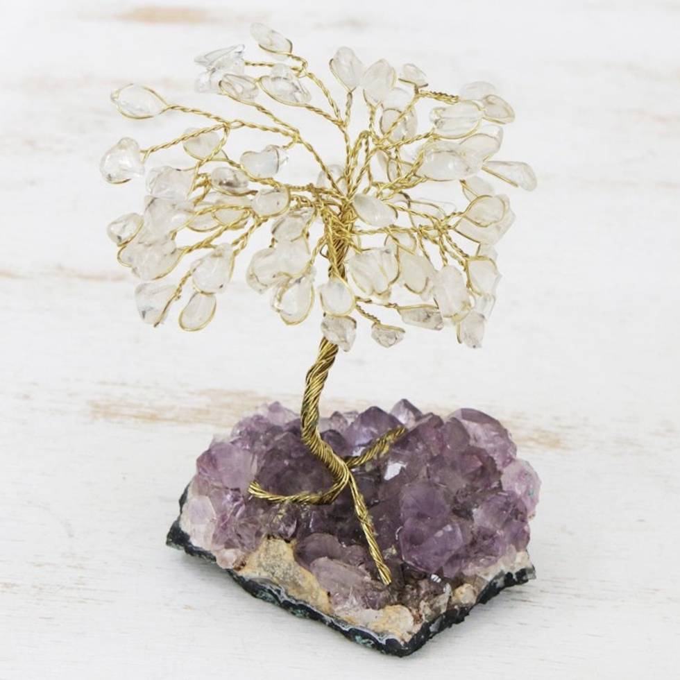 Quartzand Amethyst Gemstone Tree Sculpture from Brazil 'Little Tree' Item ID: 2669935461