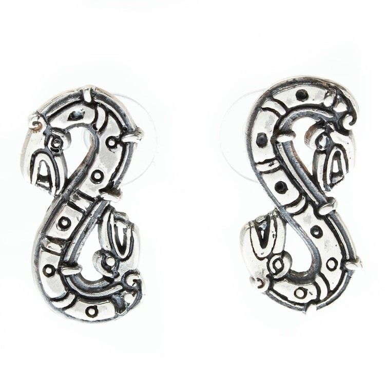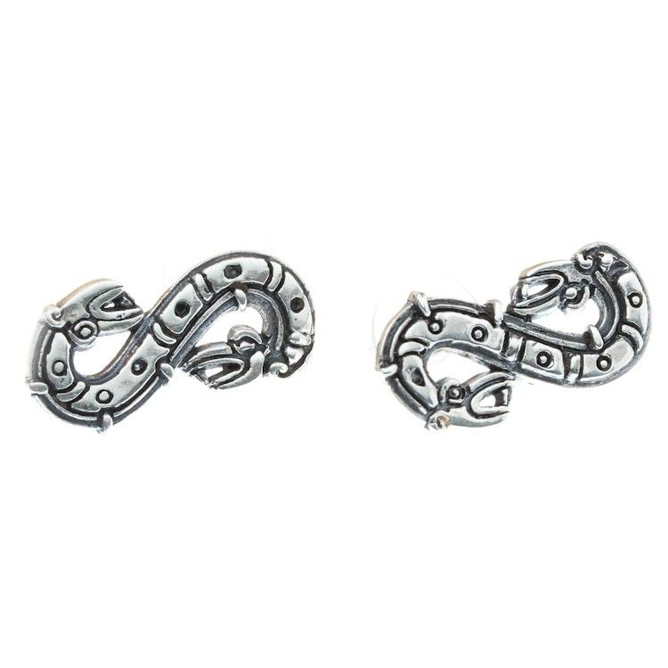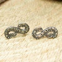 Quetzalcoatl Inspired Sterling Silver Button Earrings 'Feathered Snake' Item ID: 2671808390