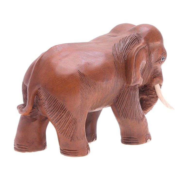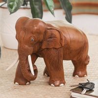"Amporn presents a design that captures the power and purpose of an elephant in its rainforest domain. Expertly carved from rain tree wood, the sculpture receives a polished finish and ivorywood tusks."