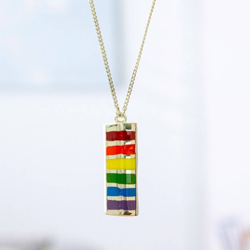 Rainbow Accent Sterling Silver Pendant Necklace 'Pyramid of Pride' Item ID: 2671807287