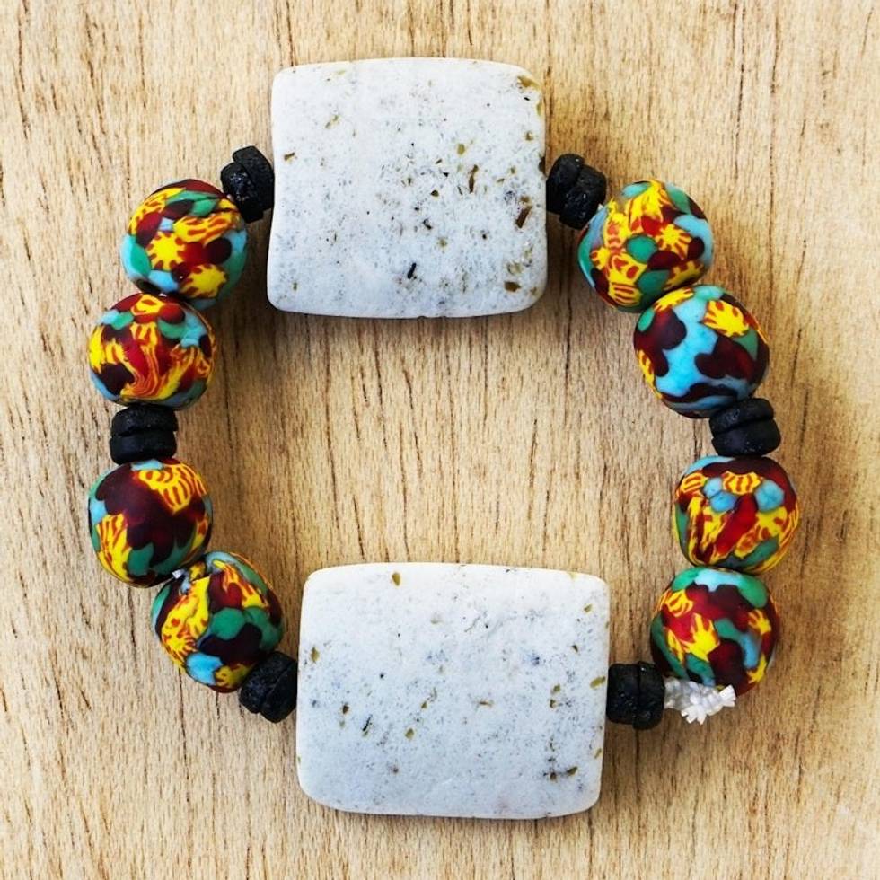 Rainbow-Hued Recycled Glass Beaded Bracelet 'Different Strokes' Item ID: 2671804017