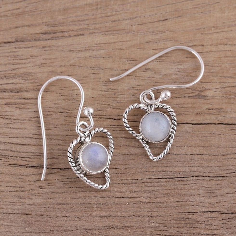 Rainbow Moonstone Abstract Heart Dangle Earrings from India 'Affection' Item ID: 2671791042