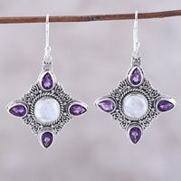 Rainbow Moonstone Amethyst Sterling Silver Dangle Earrings 'Eternal Delight' Item ID: 2671792076