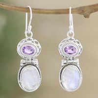 Rainbow Moonstone and Amethyst Dangle Earrings 'Magic and Mysticism' Item ID: 2671618688
