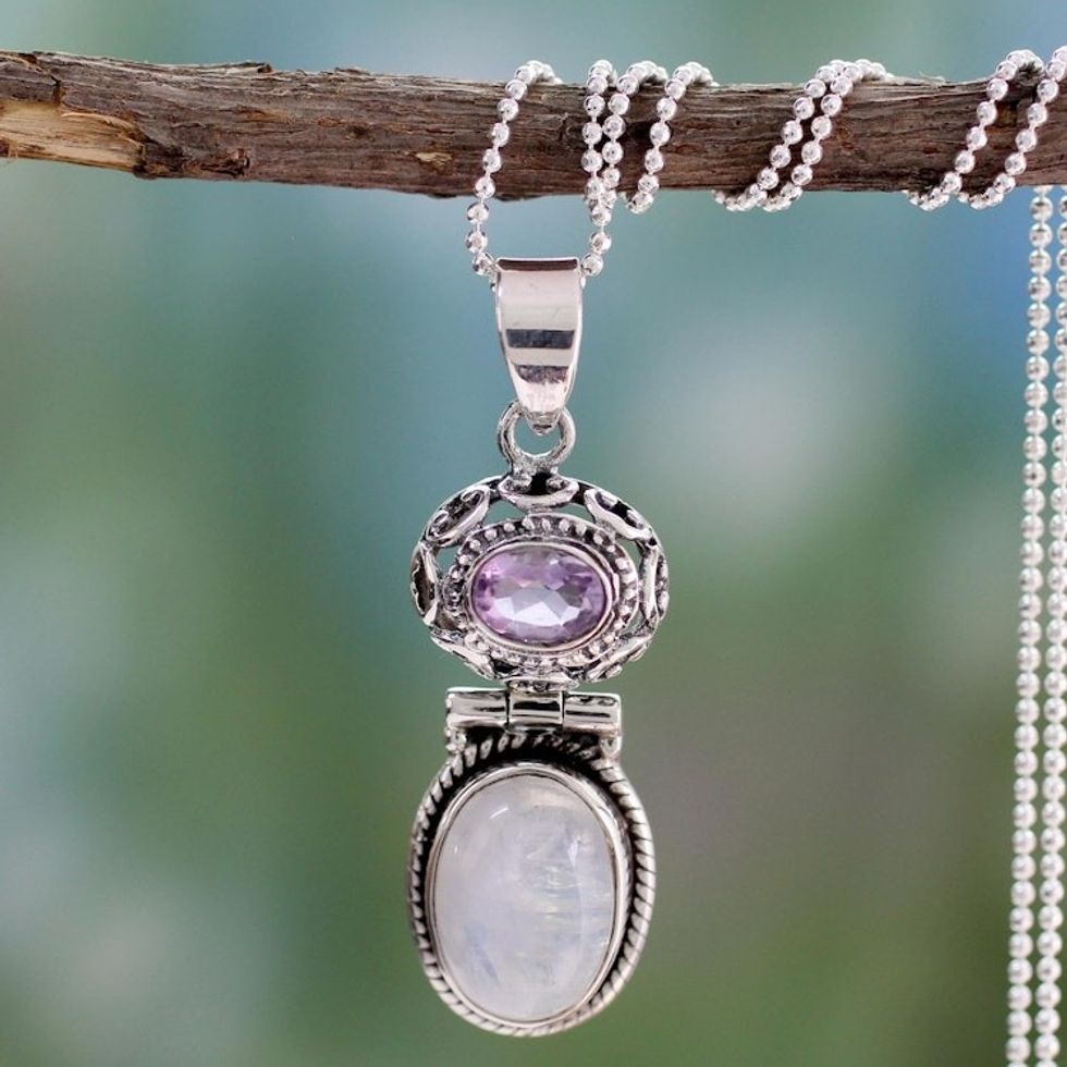 Rainbow Moonstone and Amethyst Necklace from India 'Magic and Mysticism' Item ID: 2671794517