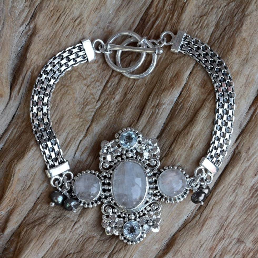 Rainbow Moonstone and Blue Topaz Bracelet 'Regal Gianyar' Item ID: 2669922768
