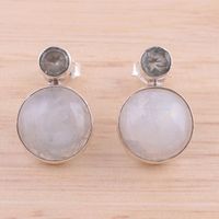 Rainbow Moonstone and Blue Topaz Drop Earrings from India 'Delhi Diva' Item ID: 2671791577