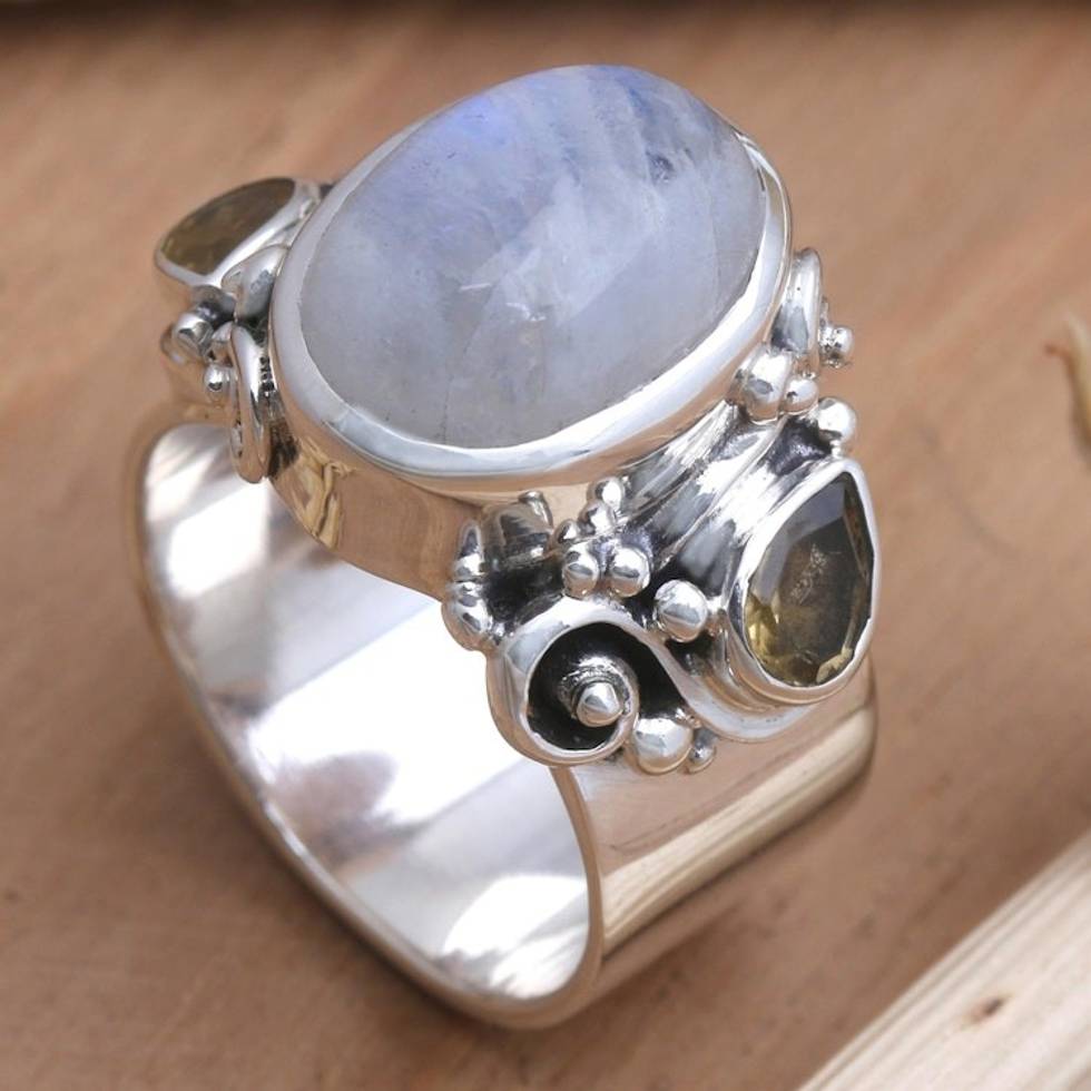 Rainbow Moonstone and Citrine Cocktail Ring 'Snow Day' Item ID: 2671747149