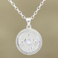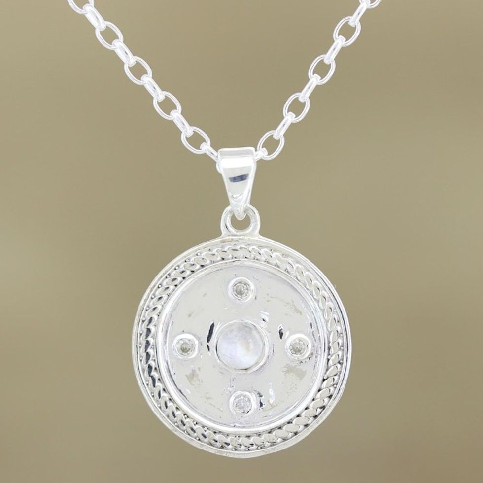 Rainbow Moonstone and Cubic Zirconia Pendant Necklace 'Surround' Item ID: 2671788495