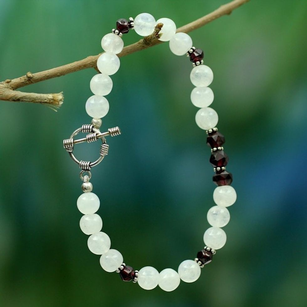 Rainbow Moonstone and garnet beaded bracelet 'Rajasthan Dancer' Item ID: 2671794574