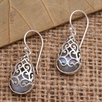 Rainbow Moonstone and Sterling Silver Dangle Earrings 'Captive Rainbow' Item ID: 2671737186