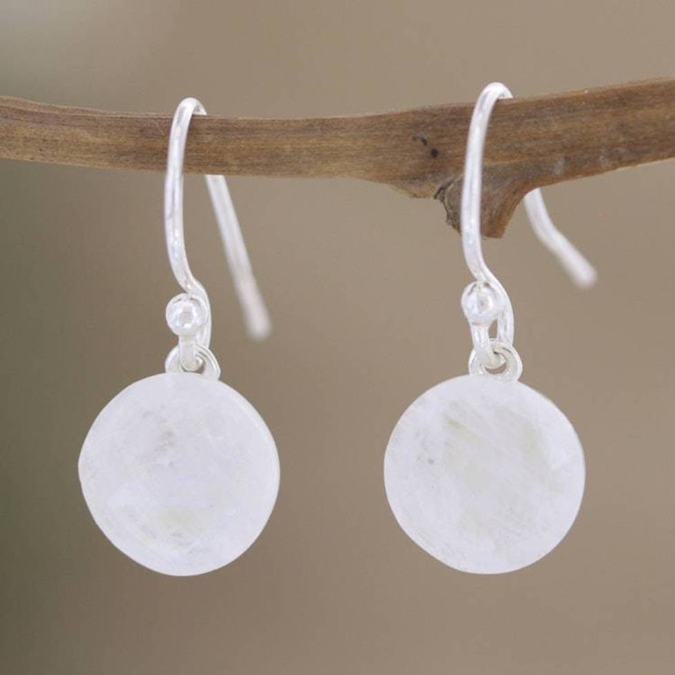 Rainbow Moonstone and Sterling Silver Dangle Earrings 'Chance of Sun' Item ID: 2676664055