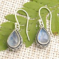 Rainbow Moonstone and Sterling Silver Dangle Earrings 'Harmonious Dew' Item ID: 2671670319