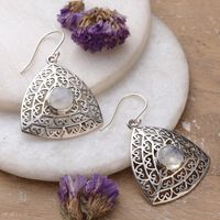 Rainbow Moonstone and Sterling Silver Dangle Earrings 'Jali Frieze' Item ID: 2671791383