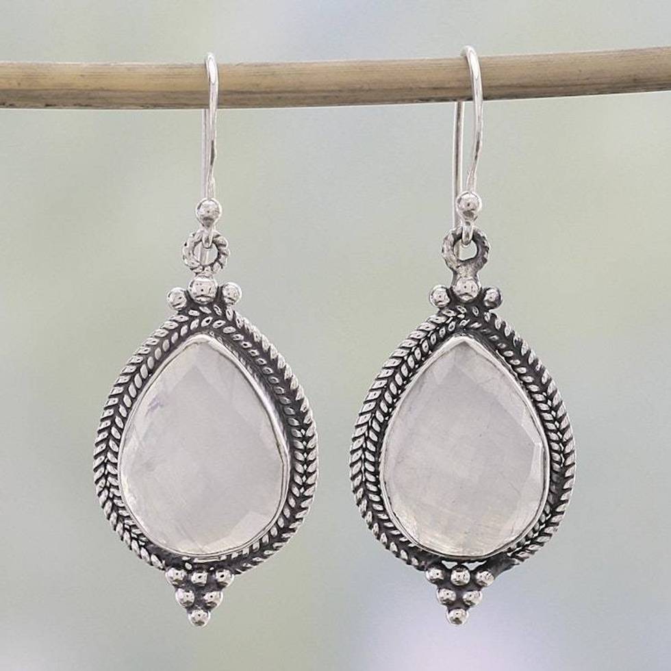 I wanted moonstone earrings that were long, delicate, and unique. These earrings met my three ?wants? and then some. These earrings are exquisite! They are simple, elegant and hang beautifully. I don't write reviews but am so pleased with these earrings that I had to share my thoughts. Thank you Chintan for your beautiful, artistic work.
