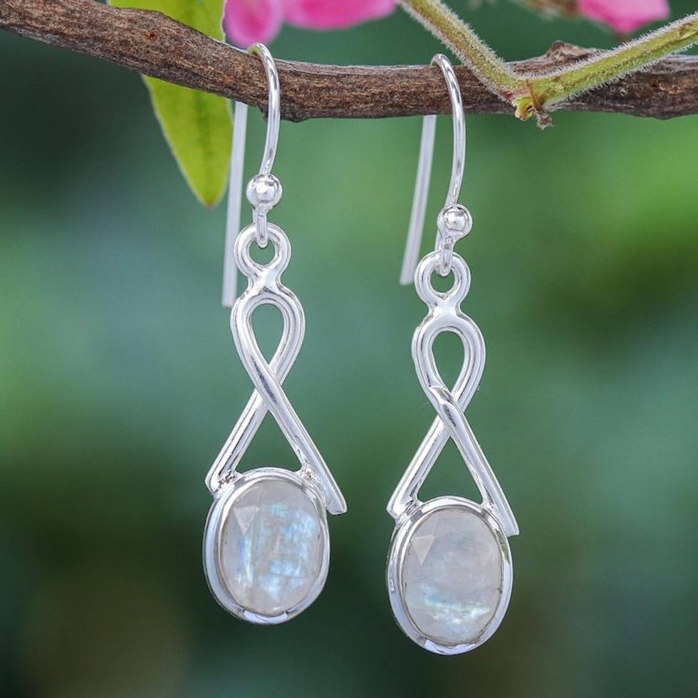Rainbow Moonstone and Sterling Silver Dangle Earrings 'Promise Me Love in Blue Flash' Item ID: 2671799844