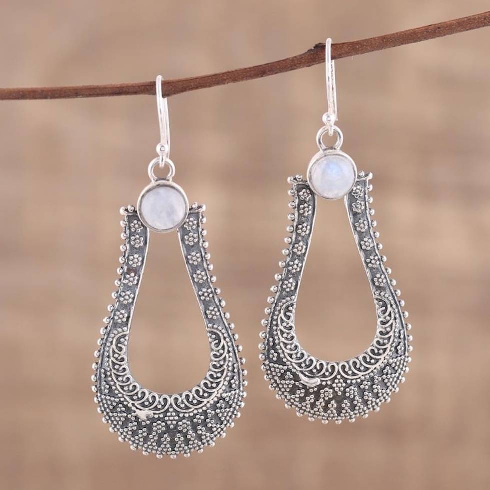 Rainbow Moonstone and Sterling Silver Dangle Earrings 'Silver Moondrop' Item ID: 2671791228